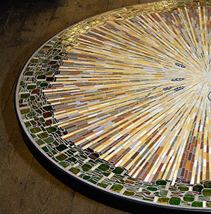 "I love walking in the countryside. When I do I am struck by the profusion of shapes and colours which aggregate into beautiful patterns; particular dispositions of forms, diverse interactions and relationships, vibrant yet serene. With my mosaics I am trying to isolate a moment in this constantly changing landscape and represent it using immutable mineral fragments. To capture the fluid nature of these patterns using hard unyielding pieces of ceramic and glass, this is the challenge I relish; I aim to convey the excitement and thrill to be found in the explosion of diversity where edges meet, while still maintaining the calm completeness of the whole."
